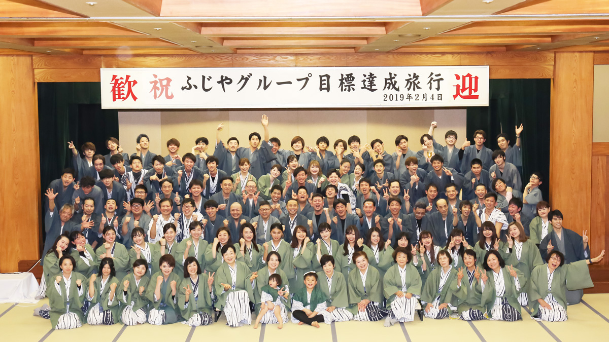 個人のスキルや実力はもちろん大切です。でも仲間と一緒に成長できる楽しさ、充実感、やりがいはきっと一人で感じるものとは違うはず。ふじやグループではスタッフ全員が力を合わせて目標を達成し、喜びを分かち合うことを大切にしています。